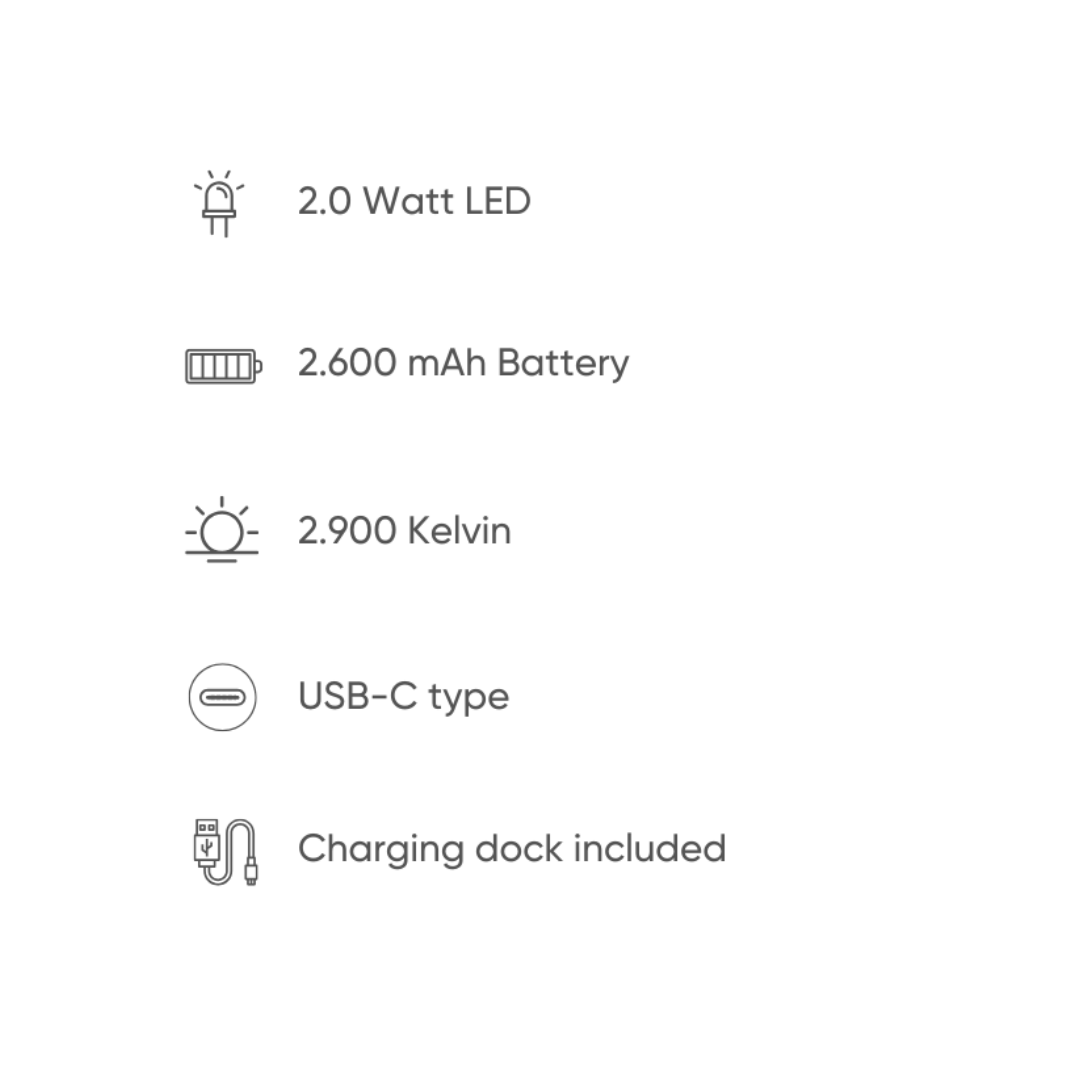 The soft, dimmable LED light adds a cozy glow to any space, creating the perfect atmosphere whether you’re unwinding at home, hosting a dinner party, or enjoying an evening outdoors.