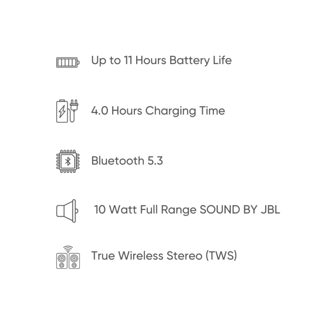 JBL Signature Sound: Immerse yourself in crystal-clear audio and 360° powered by JBL speaker technology. Whether you're listening to your favorite playlist, a podcast, or ambient soundscapes, the Sensa Play delivers deep bass, vibrant mids, and crisp highs for an unparalleled auditory experience.