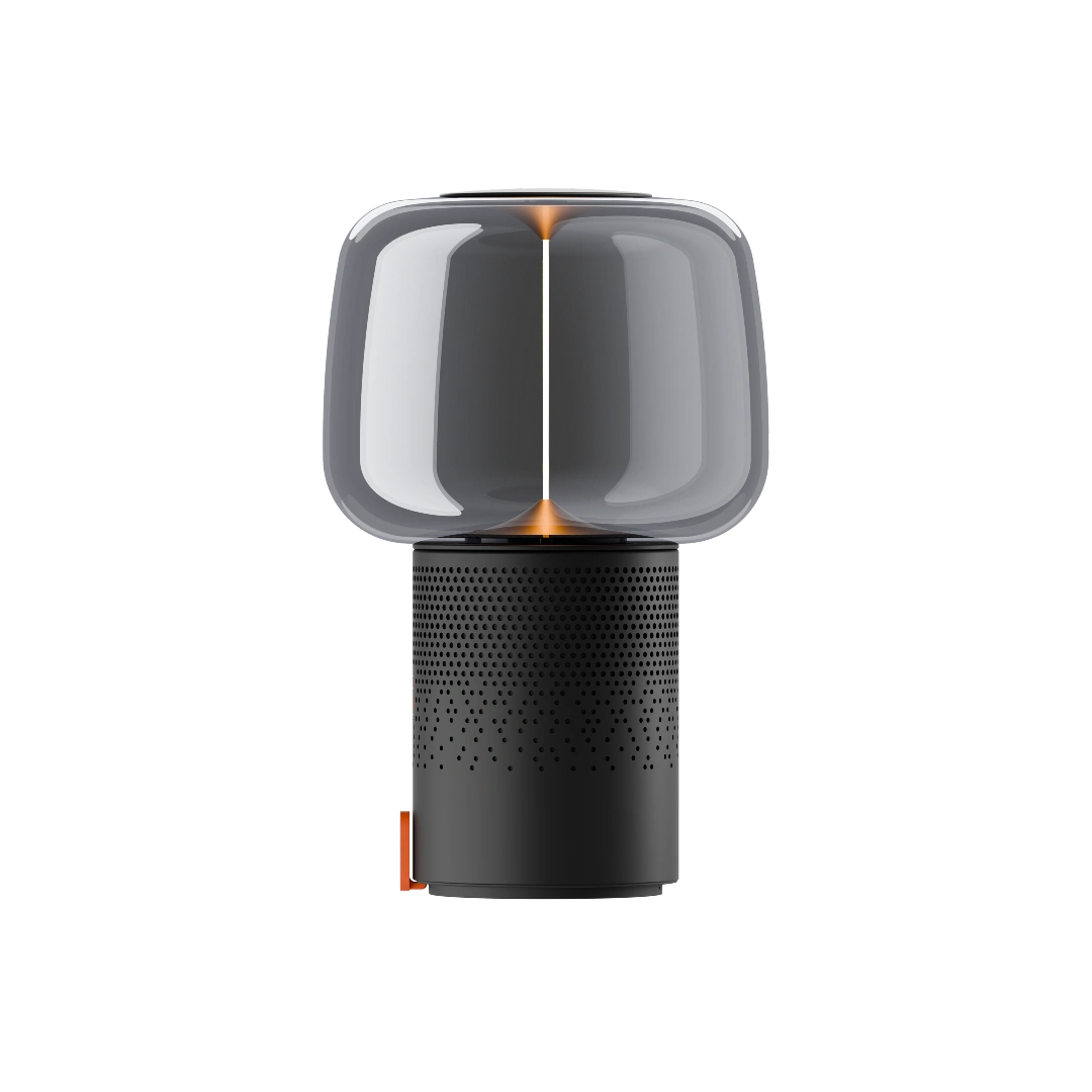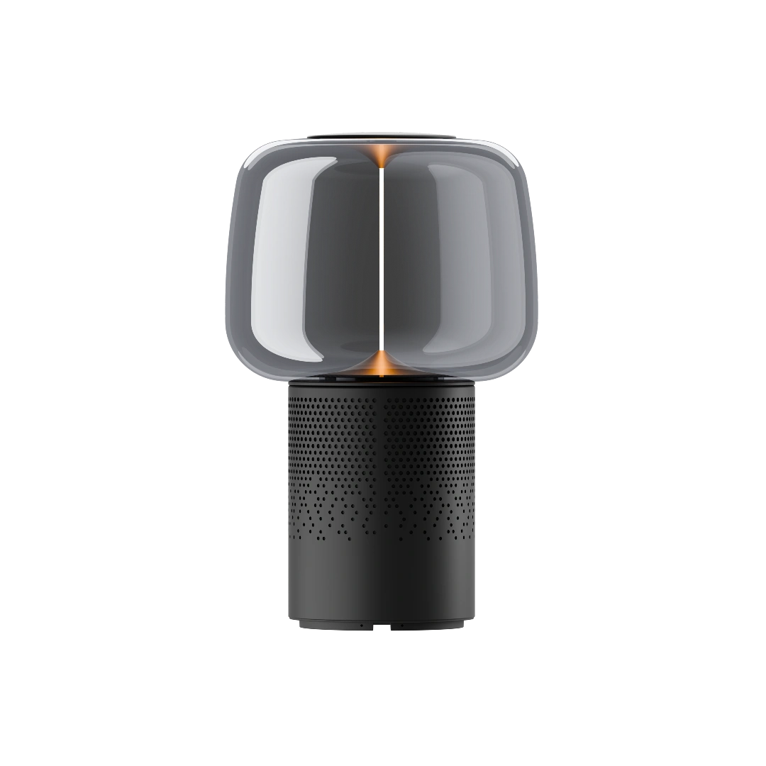 The Kooduu Serena PLAY in Anthracite features a deep, powder-coated steel body topped with a handcrafted smoked-glass lampshade, creating a bold and contemporary statement piece. The vertical filament-style LED runs through the center of the glass, casting a soft, warm glow that beautifully contrasts with the dark, architectural base.